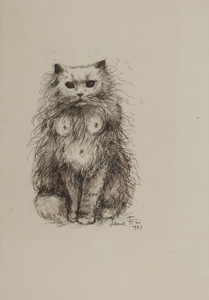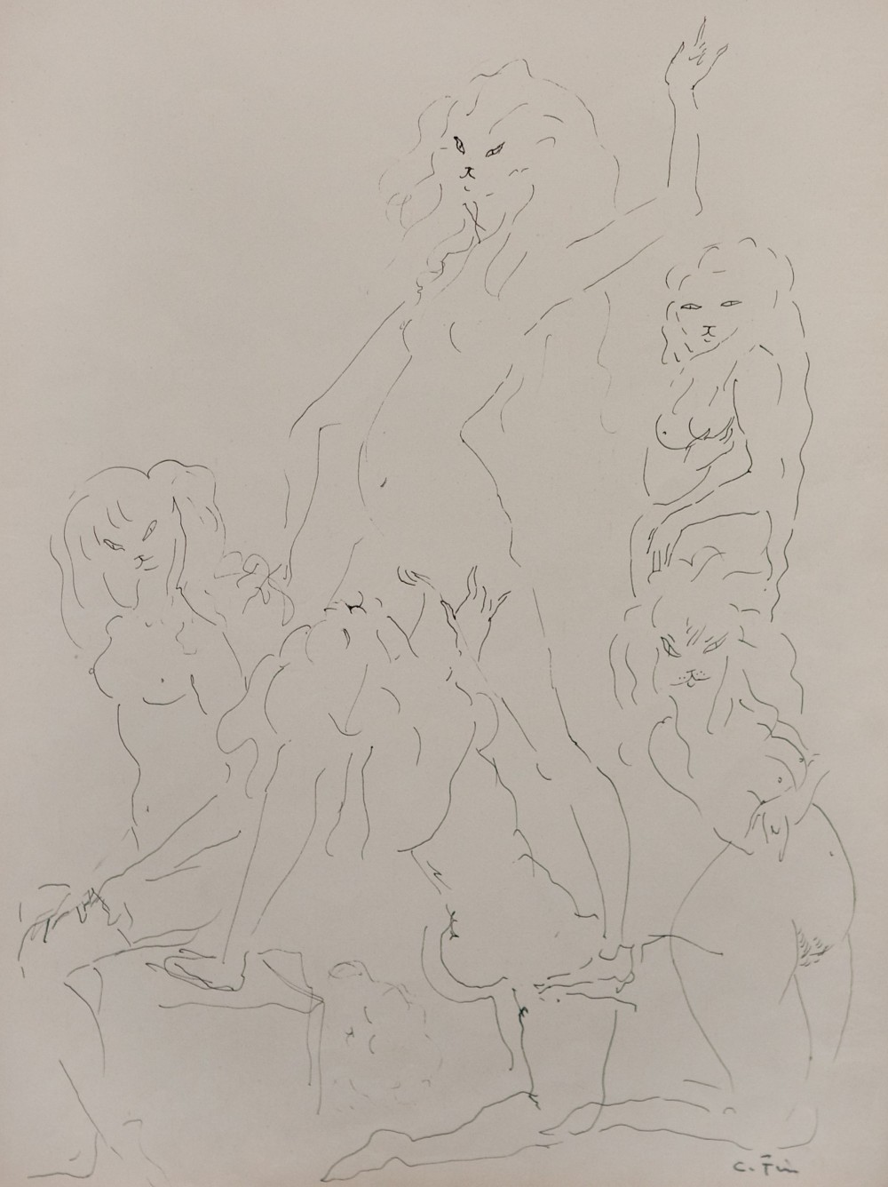 Réunion des Mamans Chats - Dessin encre de Chine - 1974 - 31 x 23 cm
