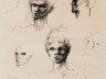 Cinq Têtes - encre de Chine noire - 1965 - 38 x 29 cm