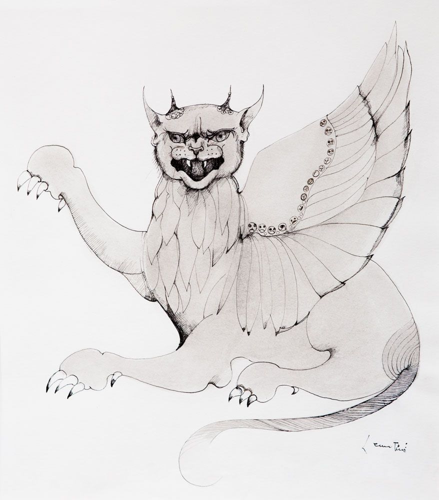 Chat Dragon (Miroir des Chats) - encre de Chine lavis - 1977 - 38 x 32 cm