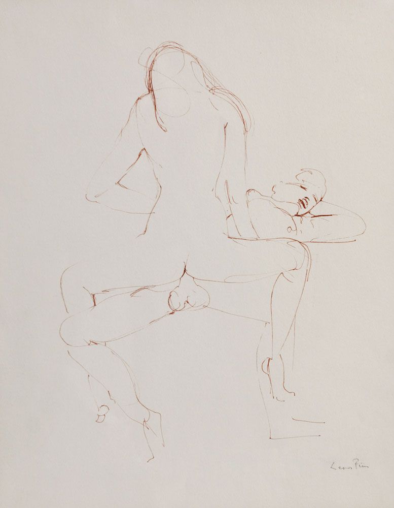 Dessin érotique - Le Concile d'Amour (deux personnages) - encre de Chine - 1973 - 39x32,5 cm