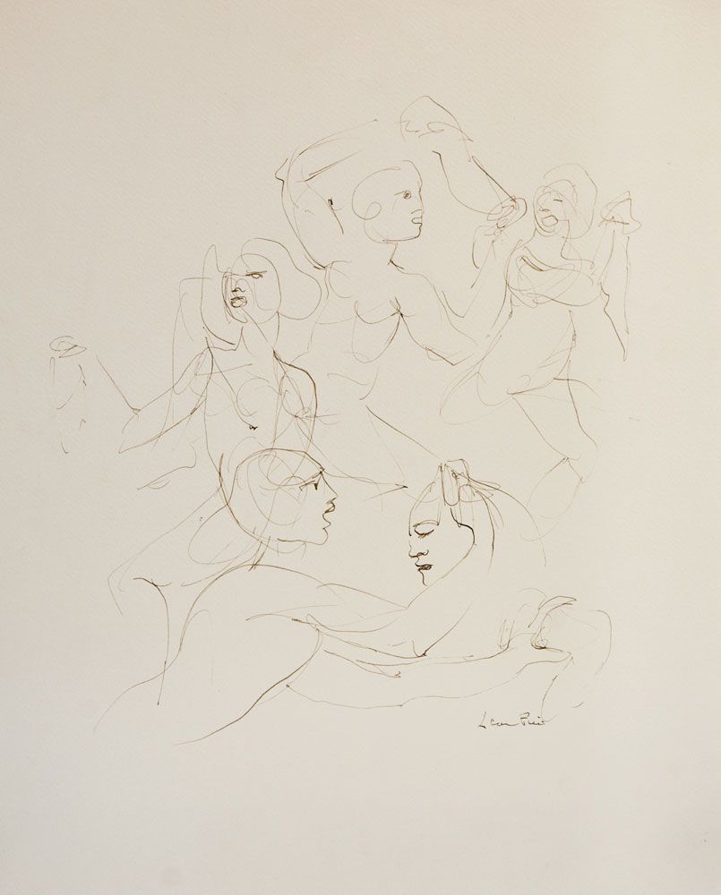 Etude de bustes - encre violette - 1986 - 34 x 25 cm