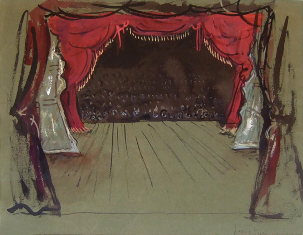 Maquette de théâtre – gouache sur papier sépia – 1950s – 33 x 25 cm