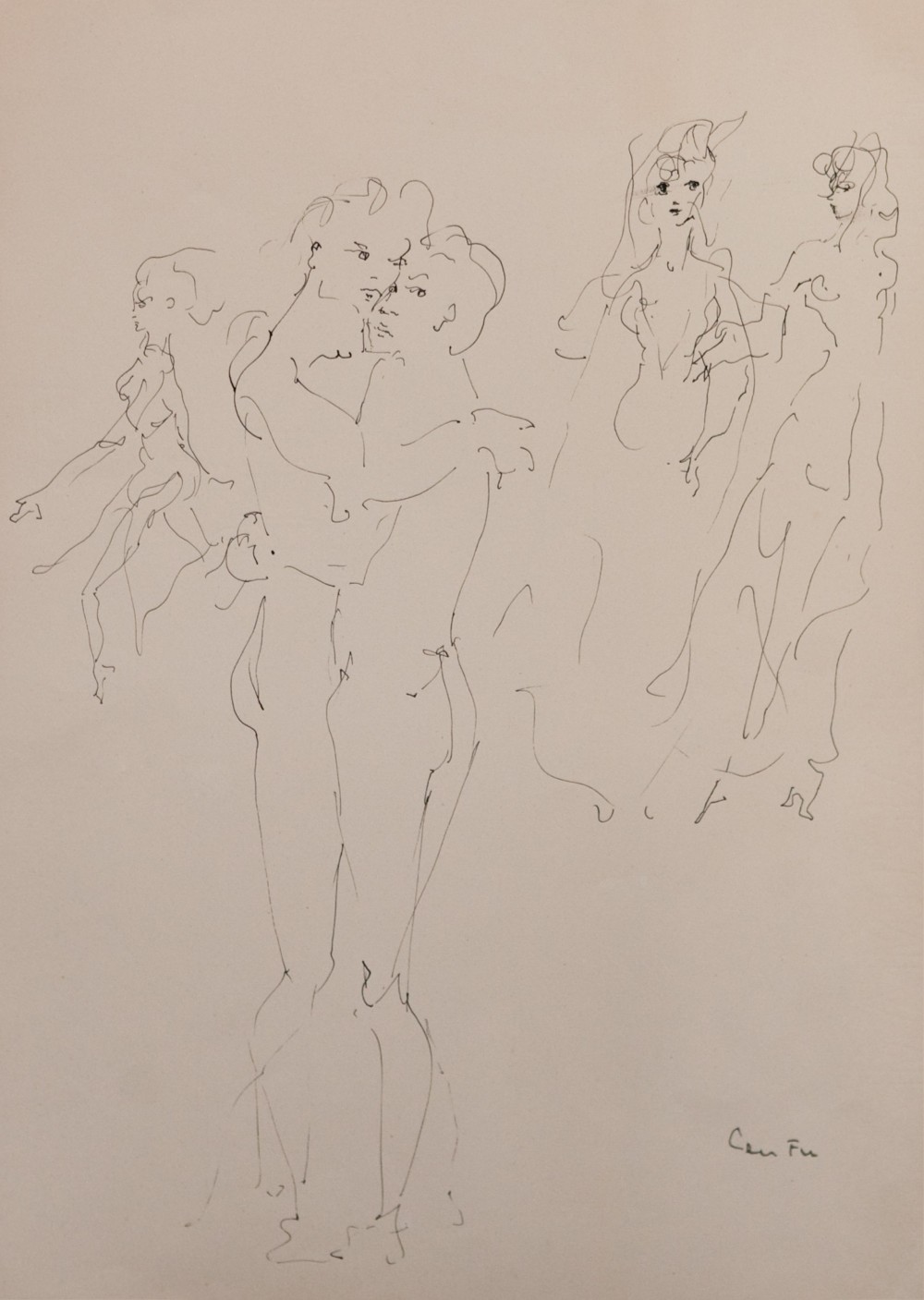 Les Demoiselles de la nuit - encre de Chine sur papier - 1948 - 31 x 25 cm
