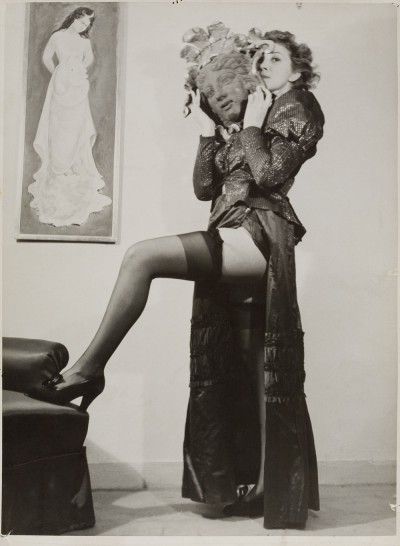Leonor Fini avec son décor pour Le Rêve de Leonor, Paris, 1949, photographie d'André Ostier